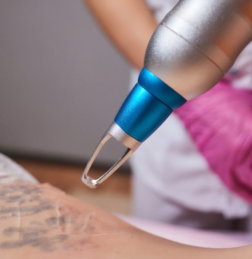 The gold standard for tattoo removal today is Q- Switched Laser Technology and advanced Picosecond lasers. These devices emit high intensity pulses of light that target tattoo ink without damaging the surrounding skin.